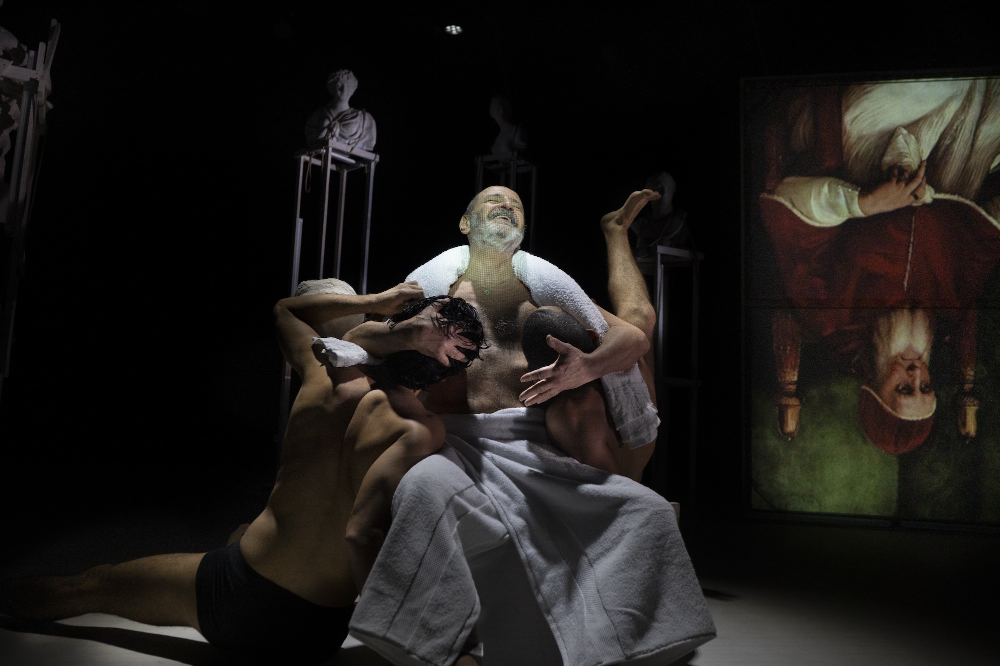 Capece ci mostra il confronto sterile tra padri e figli in dialoghi tesi e monologhi disperati. Ma la parola non basta e a mano a mano lascia il posto ai rumori e alle immagini – un coro tragico fantasmatico – e soprattutto ai corpi, in una partitura che diventa sempre piu fisica. Il dispositivo tecnologico raffinato, di respiro internazionale, cui ci ha abituati la regista, non soverchia mai la fisicita degli attori, tutti ottimi.